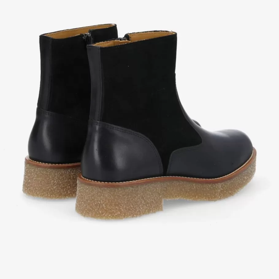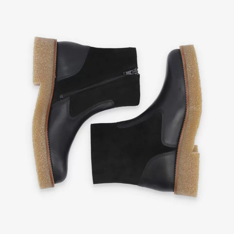 Schmoove has brought out an easy-to-match black leather version of its famous women’s Dora boot. This model stands out for its clean lines, enhanced by a blend of smooth leather and suede. It is set on a striking chunky crepe-style sole, enhanced by a stitched leather welt. A bold urban ankle boot that doesn’t compromise on comfort. It also has an inside zip so you can slip it on and off in a flash.